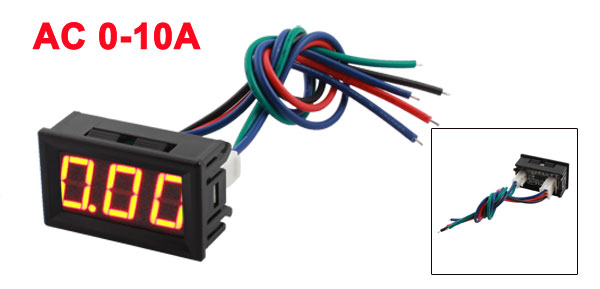 DC 0-10A LED Display Screen Red Digit Current Measuring Amperemeter w Cable