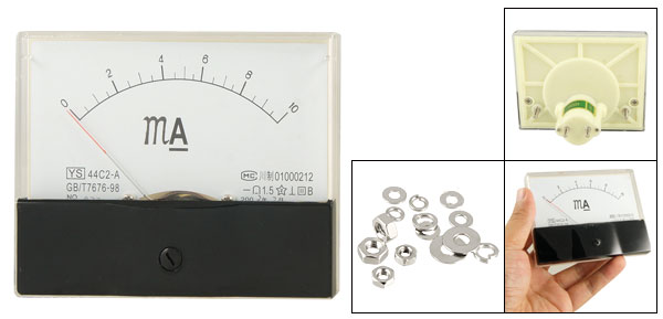 DC Current Panel Meter Model No. 44C2-A Scale Range DC 0~10mA Accuracy Class 1.5 Back Screw Diameter 3mm/ 0.12" & 4mm/ 0.16" Panel Size 9.7 x 7.9 x 1.2cm/ 3.8" x 3.1" x 0.5" (L*W*T) Overall Depth 6.1cm/ 2.4" Color White & Black Main Material Plastic & Metal Net Weight 100g Package 1 x DC Current Panel Meter - Reviews