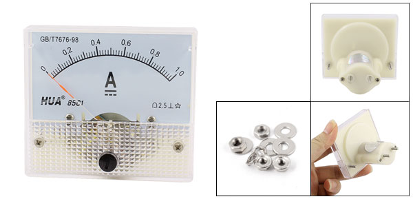 Product Name Analog Ammeter Model 85C1 Measuring Current Range DC 0-1A Accuracy Class 2.5 Meter Face Size(Approx.) 6.2 x 5.5 x 1cm / 2.5" x 2.2" x 0.39"(L*W*T) Thread Size 0.28 x 0.7cm / 0.11" x 0.28"(Dia.*L)
