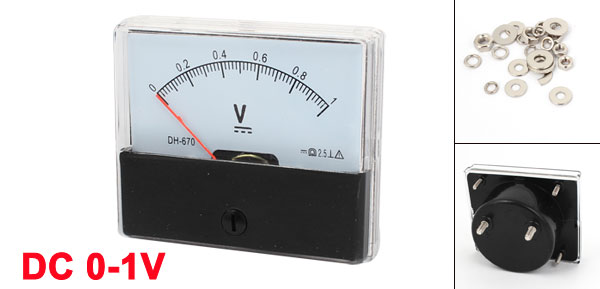 Product Name Analog Voltmeter Model DH-670 Measuring Voltage Range DC 0-1V Accuracy Class 2.5 Meter Face Size(Approx) 7 x 6.1 x 1.2cm/ 2.7" x 2.4" x 0.5"(L*W*T) Thread Size 0.4 x 1cm / 0.15" x 0.4"(D*L) 0.27 x 0.9cm/ 0.11" x 0.35"(D*L) Overall Depth 3.5cm/ 1.4" Color Black, White Net Weight 73g Package Content 1 x Analog Voltmeter Several Installing Parts - Reviews