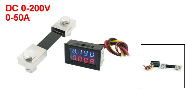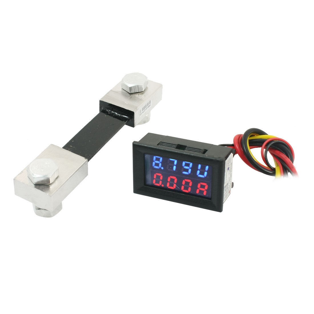 DC 0-200V 0-50A Red Blue Dual LED Voltmeter Ammeter Voltage + 100A 75mV Shunt
