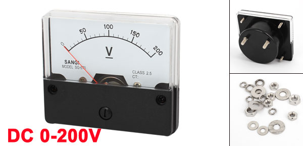 Product Name Analog Voltmeter Model No. SG-670 Measuring Voltage Range DC 0-200V Accuracy Class 2.5 Meter Face Size(Approx) 7 x 6 x 1.2cm / 3.9" x 3.16" x 2"(L*W*T) Thread Dia(Approx) Big One: 4mm / 0.16"