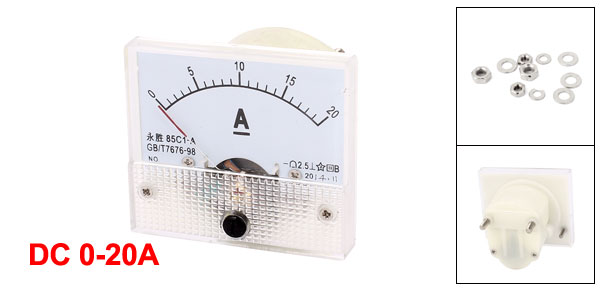 Thread Dia 4mm/ 0.16" Main Color White, Clear Brand DMiotech Net Weight 85g Country of Manufacture CHINA Model 85C1-A Package Content 1 x Analog Ammeter Overall Depth 60mm / 2.4" Meter Front Size(Approx.) 64 x 55 x 10mm / 2.5" x 2.2" x 0.4"(L*W*T) Material Plastic, Electronic Components Accuracy Class 2.5 Measuring Current Range DC 0-20A - Reviews