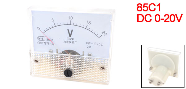 Product Name Analog Voltmeter Model 85C1 Measuring Range DC 0-20V Accuracy Class 10 Face Size(Approx) 6x5cm/2.4"x2.0"(L*W) Thread Size 0.28 x 0.75cm / 0.11" x 0.30" (D*L)