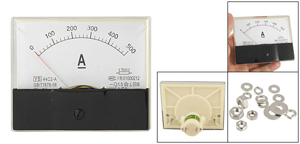 DC Current Panel Meter Model No. 44C2-A Scale Range DC 0~500A Accuracy Class 1.5 Back Screw Diameter 3mm/ 0.12" & 4mm/ 0.16" Panel Size 9.7 x 7.9 x 1.2cm/ 3.8" x 3.1" x 0.5" (L*W*T) Overall Depth 6.1cm/ 2.4" Color White & Black Main Material Plastic & Metal Net Weight 106g Package 1 x DC Current Panel Meter - Reviews