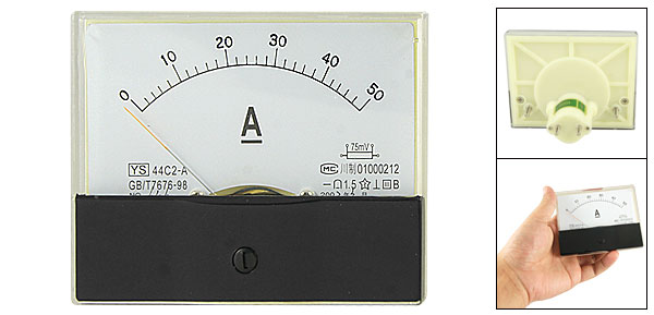 DC Current Panel Meter Model No. 44C2-A Scale Range DC 0~50A Accuracy Class 1.5 Back Screw Diameter 3mm/ 0.12" & 5mm/ 0.2" Panel Size 9.7 x 7.9 x 1.2cm/ 3.8" x 3.1" x 0.5" (L*W*T) Overall Depth 6.1cm/ 2.4" Color White & Black Main Material Plastic & Metal Net Weight 102g Package 1 x DC Current Panel Meter - Reviews