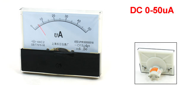 Product Name Analog Amperemeter Model 44C2 Measuring Ampere Range DC 0-50uA Accuracy Class 1.5 Meter Face Size(Approx) 10 x 8 x 1.3cm /0.4" x 0.31" x 0.51"(L*W*T) Thread Diameter 4mm/ 0.16", 3mm/ 0.12" Overall Depth 49mm / 1.9" Main Color White, Black Weight 115g Package Content 1 x Analog Amperemeter - Reviews