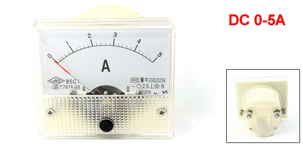 Product Name Analog Ammeter Model 85C1 Measuring Current Range DC 0-5A Accuracy Class 2.5 Total Size 6.3 x 5.8 x 5.5cm/2.5" x 2.3" x 2.2"(L*W*T) Thread Size 3.3 x 10mm/0.13" x 0.39"(D*L)