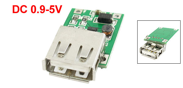 Product Name Boost Module Input Voltage DC 0.9-5V Output DC 5V 600mA Connector Type USB2.0 Size 32 x 17 x 8mm/ 1.3" x 0.67" x 0.31"(L*W*T) Material Electric Part, Plastic Main Color Green, Silver Tone Weight 4g Package Content 1 x Boost Module - Reviews