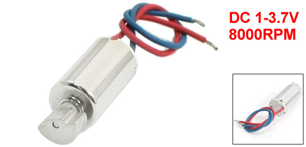 Product Name Coreless Vibration Motor Working Voltage DC 1-3.7V No Load Speed 8000RPM Body Size 6 x 10mm / 0.24" x 0.4" (D*H) Wire Length 4cm / 1.6" Total Length 14mm/ 0.55" Main Color Silver Tone Material Metal Weight 3g Package 1 x DC Coreless Vibration Motor - Reviews