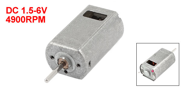 Product Name DC Geared Motor Model FF-130 SH Rated Voltage DC 1.5-6V Output Speed 4900RPM Shaft Size 2 x 13mm/ 0.08" x 0.51"(D*L) Body Size 32 x 20 x 15mm/1.2" x 0.8" x 0.6"(L*W*T) Pin Number 2 Pin Pitch 14mm/0.55" Total Length(Approx.) 50mm/2" Material Metal, Electronic Parts Color Silver Tone Weight 34g Package Content 1 x DC Geared Motor - Reviews