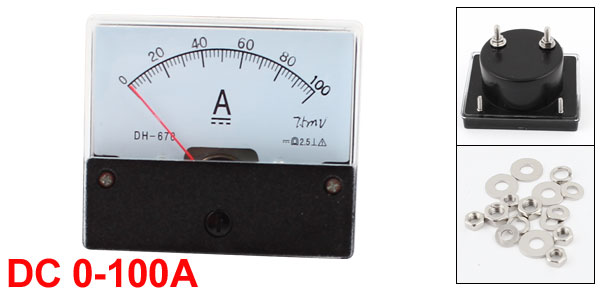 Net Weight 80g Country of Manufacture CHINA Model DC-670 Package Content 1 x Analog Ammeter, Some x Install Parts Screw Dia 2.8mm/ 0.11inches, 3.7mm/ 0.15" Overall Depth(Screw not Included) 3.5cm/ 1.4 inches Scale Range DC 0-100A Material Plastic, Metal Accuracy Class 2.5 Face Size 7 x 6cm/ 2.8 x 2.4 inches (L*W) - Reviews