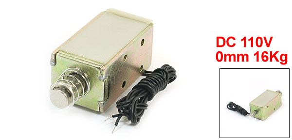 Product Name DC Solenoid Electromagnet Rated Voltage DC 110V Current 9.32A Type Push Pull Stroke & Force 0mm, 16Kg Plunger Dia.(Max.) 11mm/0.43" Total Size 60 x 32 x 28mm/2.4" x 1.3" x 1.1"(L*W*H) Cable Length 100cm/3.3Ft Material Metal, Electronic Parts Net Weight 236g Package Content 1 x DC Solenoid Electromagnet - Reviews