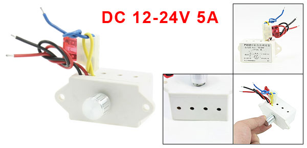 Product Name Speed Control Motor Voltage DC 12-24V Current 5A Resistance 2µF Frequency/ Speed 50HZ/ 90-1350 RPM 60Hz/ 90-1650 RPM Size 55 x 30 x 30mm/ 2.2" x 1.1" x 1.1" (L*W*H) Mount Size 5 x 65mm/ 0.2" x 2.6" (D*Distance) Wire Length 24cm/ 0.9" Material Metal Color White, Silver Tone Net Wieght 66g Package Content 1 x Speed Control Motor - Reviews