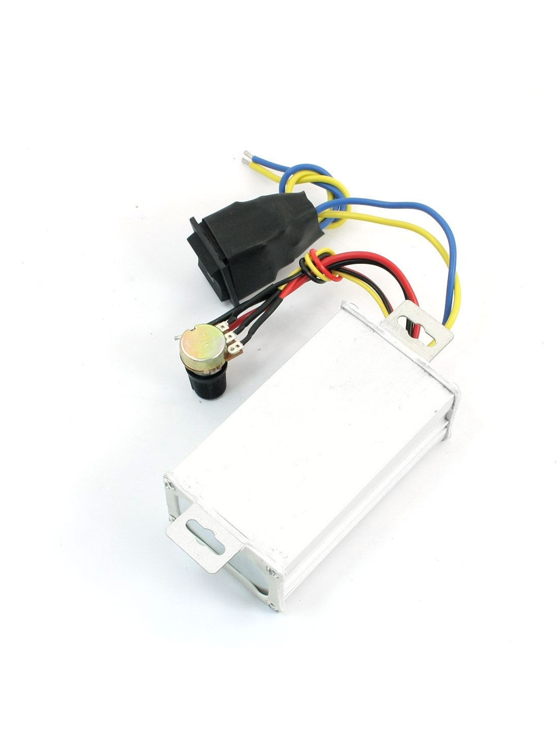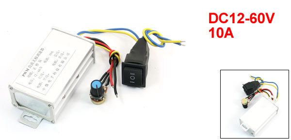 Product Name Motor Driver Speed Controller Control Type CW, Stop, CCW Input Voltage DC12-60V Rated Current 10A Power 500W Modulation Type PWM Control By B10K Potentiometer Rocker Switch Position 3 Body Size 90 x 50 x 3.3mm/3.5" x 2" x 1.3"(L*W*H) Fixing Hole Size 16 x 6mm/0.63" x 0.24"(L*W) Fixing Hole Center Distance 103mm/4" Wire Length 15cm/6", 11cm/ 4.3", Material Metal, Aluminum, PCB Main Color Black, Silver Tone, Green Wieght 163g Package Content 1 x Motor Driver Speed Controller - Reviews
