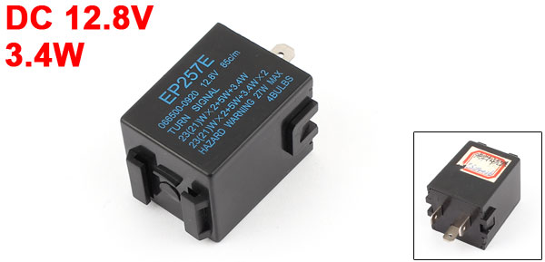 Main Color Black Brand DMiotech Country of Manufacture CHINA Model EP257E Material Plastic, Metal Contact Power Rating 3.4W Contact Type SPST Coil Niminal Voltage DC 12.8V Net Weight 30g Package Content 1 x Car Flasher Relay Max Hazard Warning 27W, 4 Bulbs Size 36 x 29 x 29mm Pin Numbers 3pin - Reviews