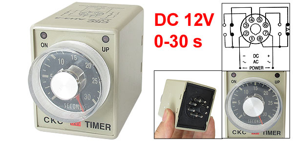 Product Name Time Relay Type AH3-3 Coil Voltage 12V DC Contact Type DPDT Contact 5A 250VAC Resistive Load Time Range 0-30 Seconds