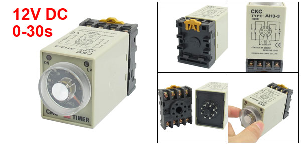 DC 12V 0-30 Seconds Power On Delay Timer Timing Relay AH3-3 w Base Socket