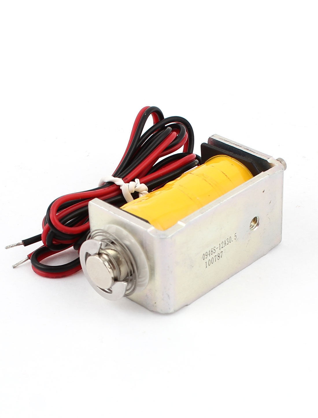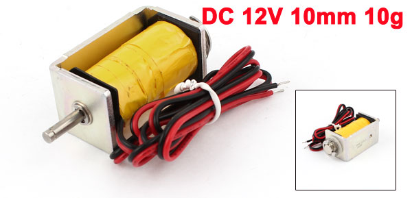 Main Color Silver Tone,Yellow Brand DMiotech Country of Manufacture CHINA Cable Length 70cm/ 27.6" Model 0946S-12A30.5 Power 4.72W Material Metal, Electronic Parts Rated Voltage Current DC 12V 0.39A Electrified Rate 100% Stroke & Force 10mm 10g Net Weight 126g Package Content 1 x DC Solenoid Electromagnet Plunger Size 70 x 4mm/ 2.8" x 1.6"(L*D) Body Size 47 x 26 x 23mm / 1.9" x 1" x 0.9" (L*W*T) - Reviews