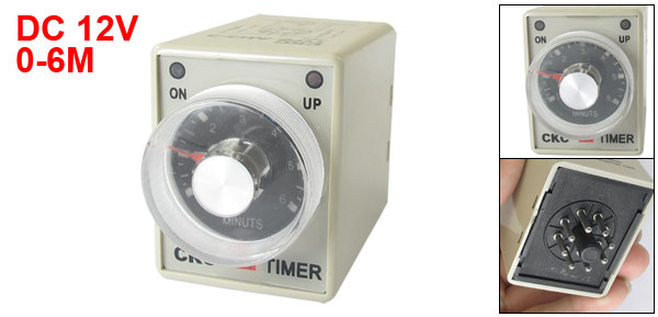 Product Name Time Relay Type AH3-3 Coil Voltage 12V DC Contact Type DPDT Contact 5A 250VAC Resistive Load Time Range 0-6 Minutes