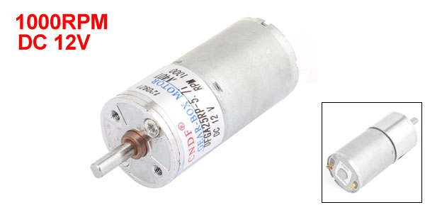 Product Name DC Geared Motor Rated Voltage DC 12V Rated Current 0.11A Output Speed 1000RPM Shaft Diameter 4mm/ 0.157" Gearbox Part Diameter 25mm/ 0.98" Motor Part Diameter 23mm/ 0.9" Total Length(Approx.) 63mm/ 2.48" Material Metal, Electronic Parts Color Silver Tone Weight 84g Package Content 1 x DC Geared Motor - Reviews