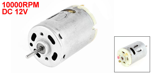 DetailsDC 12V 10000RPM 2.3mm Shaft Magnetic Electric Motor Replacement  Product Name DC Motor Rated Voltage DC 12V Speed 10000 RPM Shaft Diameter 2.3mm/ 0.1" Gearbox Size 58 x 28 mm/ 2.3" x 1.1" (L*D) Main Color Silver Tone Material Metal Weight 62g Package 1 x DC Motor