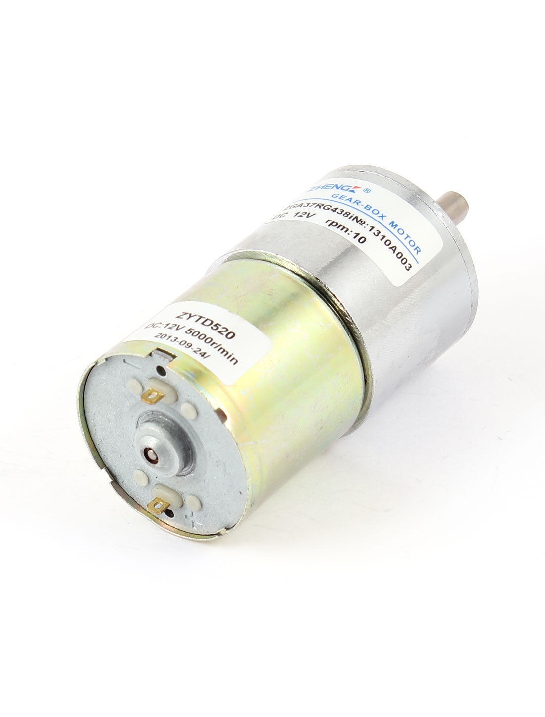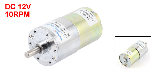 Product Name DC Geared Motor Rated Voltage DC 12V Speed 10 RPM Shaft Diameter 6mm/ 0.24" Motor Part Size 35 x 33mm/1.4" x 1.3"(D*H) Overall Size 37 x 84mm/ 1.46" x 3.3" (D*H) Main Color Silver Tone Material Metal Weight 130g Package 1 x DC Geared Motor - Reviews