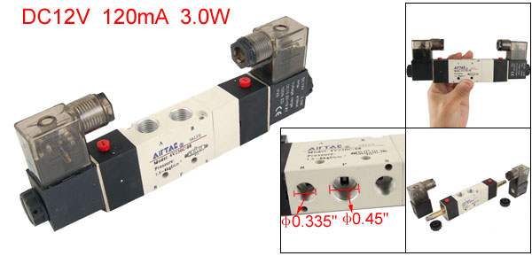 DC 12V 120mA 3W 4V230C-08 3 Position 5 Way Air Solenoid Valve