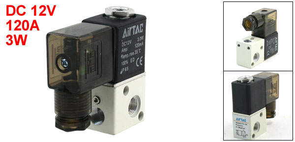 DetailsDC 12V 120mA 3W Pneumatic Components Air Solenoid Valve Coil Black  Product Name Solenoid Valve Coil Voltage DC 12V Current 120mA Power 3W Hex Connector Inner Dia(Approx) 9.3mm/0.36" Size(Approx) 6 x 6 x 2.1cm/2.4" x 2.4" x 0.8"(L*W*H) Thread Dia 8.6mm Thread Size 1/8"PT Material Plastic, Electrical Part Net Weight 136g Package Content 1 x Solenoid Valve Coil