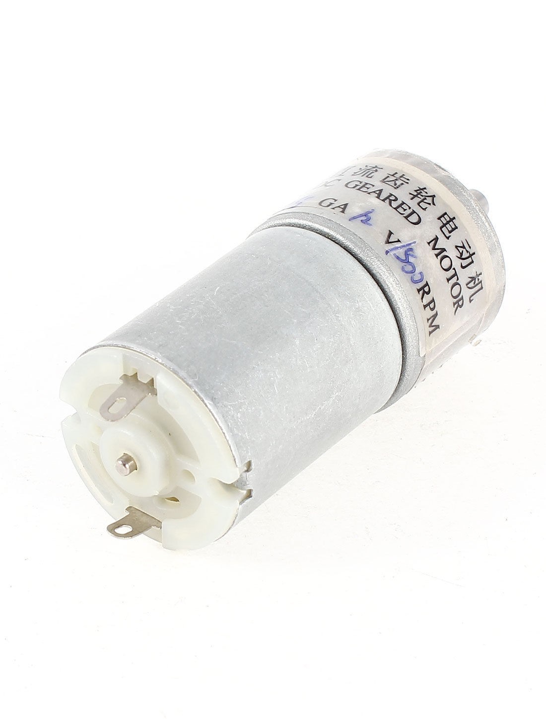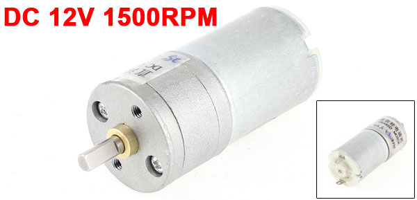 Product Name DC Geared Motor Rated Voltage DC 12V Output Speed 1500RPM Mounting Screw Hole Diameter 2.4mm/0.094" Gearbox Size 25 x 19mm/ 1" x 0.75" (D*H) Shaft Size 4 x 10mm/0.16" x 0.4"(D*H) Body Length 50mm/ 2" Total Length 65mm/ 2.6" Main Color Silver Tone Material Metal Net Weight 80g Package 1 x DC Geared Speed Reduce Motor - Reviews