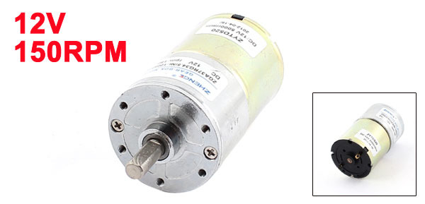 Main Color Silver Tone Brand DMiotech Net Weight 187g Country of Manufacture CHINA Total Length 80mm/3" Rated Voltage DC 12V Package Content 1 x DC Geared Motor Material Metal, Electric Parts Shaft Size 6 x 15mm/0.24" x 0.6"(D*L) Motor Size 36 x 33mm/1.4" x 1.3"(D*L) Rated Speed 150RPM Gear Box Sizr 25 x 37mm/1" x 1.5"(L*D) - Reviews