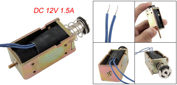 Product Name Open Frame Solenoid Material Metal, Electronic Parts Color As Picture Shown Rated Voltage DC 12V Action Form Push Stroke & Force 5mm, 560gf Current 1.5A Body Size 7 x 2.3 x 1.8cm/2.8'' x 0.9'' x 0.7'' (L*W*H) Cylinder Size 3.9 x 1.3cm/1.5'' x 0.5''(L*D) Pluger Dia. 0.8cm/0.31'' Cable Length 15cm/5.9'' Net Weight 103g Package Content 1 x Open Frame Solenoid Electromagnet - Reviews