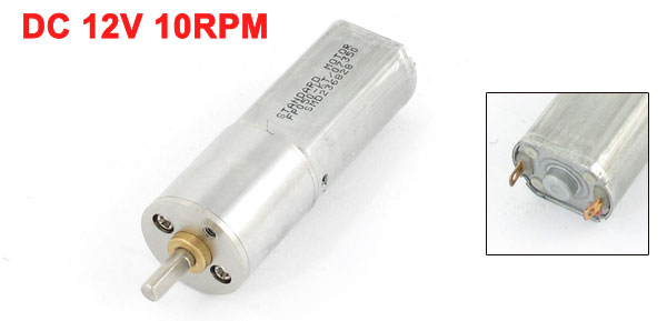 Product Name DC Geared Motor Rated Voltage DC 12V Rated Current 16GA ( no load ) Speed 10 RPM Shaft Diameter 3mm/ 0.118" Gearbox Size 16 x 18mm/ 0.63" x 0.71"(D*H) Overall Size 16 x 57mm/ 0.63" x 2.2" (D*H) Main Color Silver Tone Material Metal Weight 31g Package 1 x DC Geared Motor - Reviews