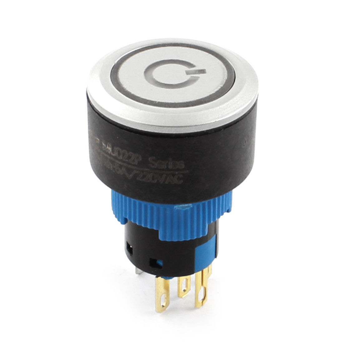 Item Name Push Button Switch Model MU22P/F11Z Contact Type SPDT(1NO 1NC) Action Type Latching Type Rating AC 220V 5A Light Voltage DC 12V Light Color Red LED Pin Number 5 Button Cap Dia 18mm/0.71" Mounting Thread Dia. 16mm/ 0.63" Total Size 25 x 33mm/1" x 1.3"(D*H) Material Plastic, Electronic Parts Color Black Weight 12g Package Content 1 x Push Button Switch - Reviews