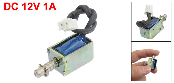 Product Name Open Frame Solenoid Model 0420L-12C12 Material Metal, Electronic Parts Action From Pull Rated Voltage DC 12V Stroke/Force 4mm/100gf Current 1A Total Size 27 x 12 x 11mm/ 1'' x 0.5'' x 0.4'' (L*W*H) Coil Size 15 x 8mm/0.6'' x 0.3'' ''(L*D) Plunger Diameter 4mm/ 0.2'' Cable Length 85mm/ 3.3'' Net Weight 13g Package Content 1 x Open Frame Solenoid Electromagnet - Reviews