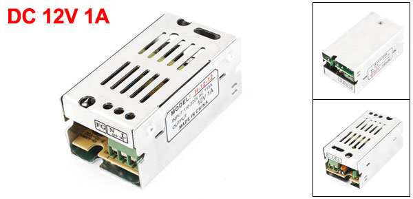 Product Name Switching Power Supply Model No. H-12-12 Input AC 100-220V 15A Output DC 12V 1A Terminal Quantity 5 Total Size 7 x 4 x 3cm / 2.8" x 1.6" x 1.2" (L*W*T) Case Material Metal Main Color Silver Tone Net Weight 57g Package Content 1 x Switching Power Supply - Reviews