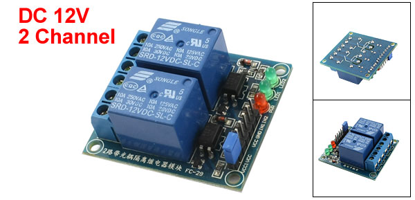 Product Name Optocoupler Relay Module Model SRD-12VDC-SL-C Coil Voltage DC 12V Channel 2 Channel Trigger Type High Level Trigger Contact Voltage AC 250V/125V 10A