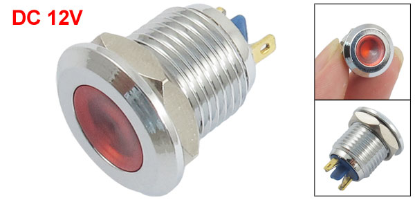 DC 12V 2 Pins Chrome-plated Metal Red Light Signal Indicator Pilot Lamp