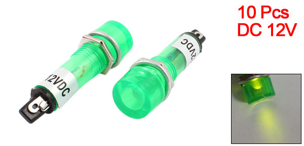 DC 12V 2 Pins Terminals Green Signal Lamps Indicator Lights 10 Pcs