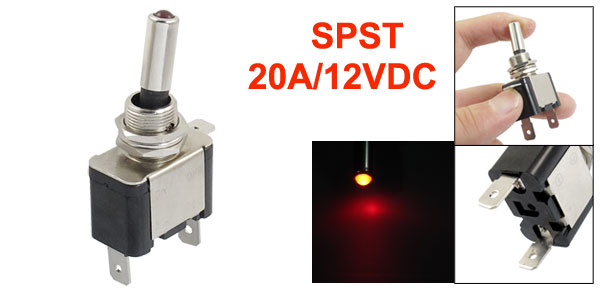 DC 12V 20A 3 Terminal SPST ON/OFF Red LED Light Latching Toggle Switch
