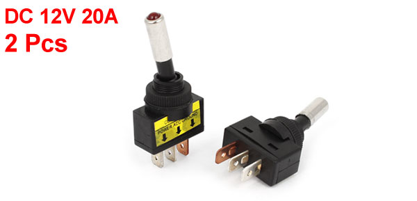 DC 12V 20A On/Off 3 Terminals SPST Red Light Car Toggle Switch 2pcs