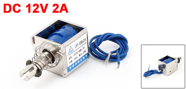 Force 20N Main Color Silver Tone, Blue Brand DMiotech Net Weight 66g Rated Voltage DC 12V 2A Country of Manufacture CHINA Cable Length 20cm/ 7.9" Package Content 1 x DC Solenoid Electromagnet Stroke 10mm Material Metal, Electronic Parts Plunger Size 32 x 7mm/ 1.3" x 0.28"(L*D) Body Size 27 x 25 x 22mm/ 1.1" x 1" x 0.9"(L*W*H) - Reviews