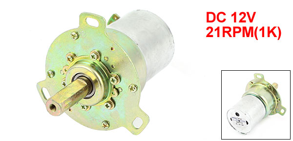 Main Color Silver Tone, Brass Tone Country of Manufacture CHINA Hole Distance 56mm/2.2" Total Length 94mm/3.7" Model 38ZY13 Material Metal, Electronic Parts Shaft Size 27 x 10mm/1" x 0.4"(L*D) Net Weight 248g Rated Voltage DC 12V Speed 21RPM(1K) Package Content 1 x Gear Box Motor Screw Hole Dia. 3mm/0.12" Mounting Hole Size 8 x 4.5mm/0.3" x 0.2"(L*W) Body Size 66 x 44mm/2.6" x 1.7"(L*D) - Reviews
