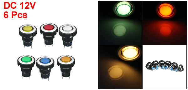 Product Name Signal Indicator Light Light Voltage DC 12V Light Color 6 Colors(Red, Orange, Yellow, Green, Blue, Warm White) Light Head Dia 15mm/0.6" Pins 2 Pin Pitch 12mm/0.47" Mounting Hole Diameter 22mm/0.9" Total Size(Not Included Pin) 29 x 33mm/ 1.2" x 1.3" (D*L) Material Plastic, Electric Components Color Black Net Weight 68g PakcageContent 6 Pcs x Signal Indicator Light - Reviews