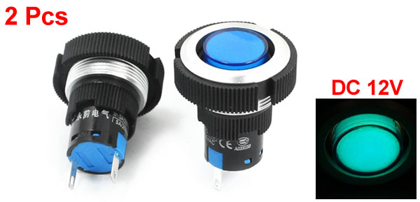 DC 12V 22mm Dia Panel Mounting Blue Signal Indicator Light Bulb 2 Pcs