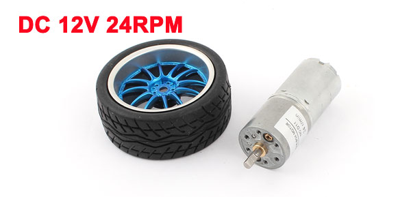 DC 12V 24RPM 4mm Shaft Cylindrical Speed Reduce Gear Box Motor w Wheel