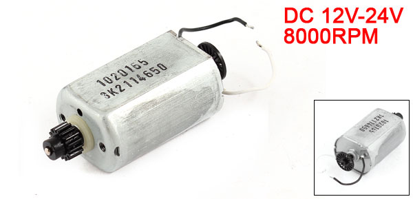 Product Name DC Geared Motor Model RK-370SD-350 Rated Voltage DC 12-24V Speed 8000 RPM Current 0.04A Shaft Diameter 2mm/ 0.08" Gearbox Height(Not Include Shaft) 36mm/ 1.4" Black Wheel Dia 11mm/0.43" Main Color Silver Tone Material Metal, Electronic Parts Weight 50g Package 1 x DC Geared Motor - Reviews