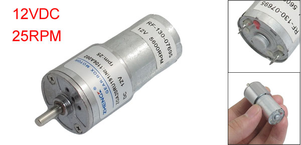 Product Name Geared Motor Model ZGA20RU Rated Voltage 12VDC Speed 25RPM Pin Quantity 2 Shaft Size 3 x 8mm/ 0.12" x 0.315" (D*L) Body Size 20 x 43mm/ 0.79" x 1.7" (Max.D*L) Main Color As Picture Shown Material Metal, Electronic Parts Weight 40g Package 1 x Geared Motor - Reviews