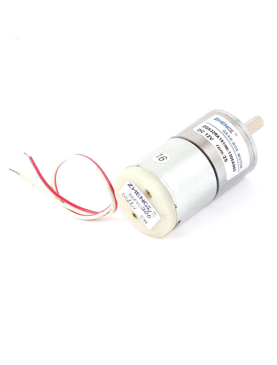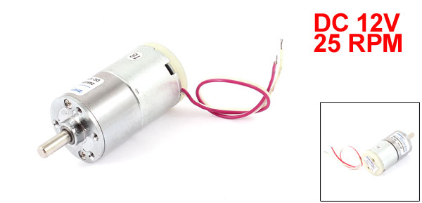 Product Name DC Geared Motor Rated Voltage DC 12V Speed 25 RPM Shaft Diameter 6mm/ 0.24" Shaft Length 14mm/0.55" Motor Part Size 31 x 28mm/1.2" x 1.1"(D*H) Overall Size 25 x 70mm/ 1" x 2.8" (D*H) Wire Length 17cm/6.7" Main Color Silver Tone Material Metal Weight 140g Package 1 x DC Geared Motor - Reviews