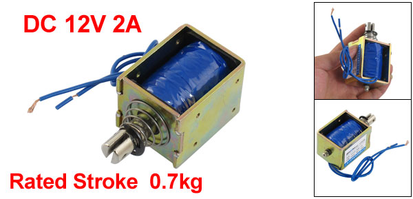Product Name DC Solenoid Electromagnet Type MR-1250B Rated Voltage DC 12V Rated Current 2A Action Form Push Rated Stroke 10mm, 0.7kg Body Size(Approx) 5.2 x 4.1 x 3.7cm / 2.0 "x 1.6" x 1.4" (L*W*H) Cylinder Size(Approx) 8.7 x 1.2cm / 3.4" x 0.4" (L*D) Cable Length(Approx) 22cm / 8.6" (Each) External Material Metal, Electronic Parts Main Color Silver Tone Weight 364g Package Content 1 x DC Solenoid Electromagnet - Reviews